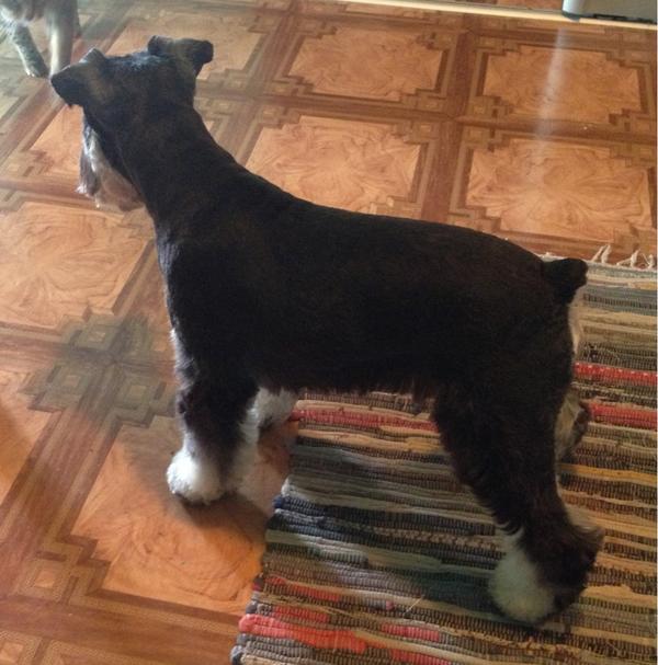 Вчера его пощипали и здорово постригли кое-что, он оказывается такой маленький у нас :)) Мне даже показалось,что худой, но на самом деле по-моему он в тонусе. У наго такие мышцы на ногах! Прям как у борзой) Много стараемся гулять и хотя бы раз в неделю ездить в поле, чтобы он побегал без поводка.